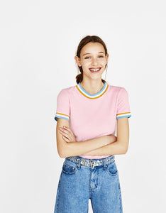 T-shirt with contrasting collar